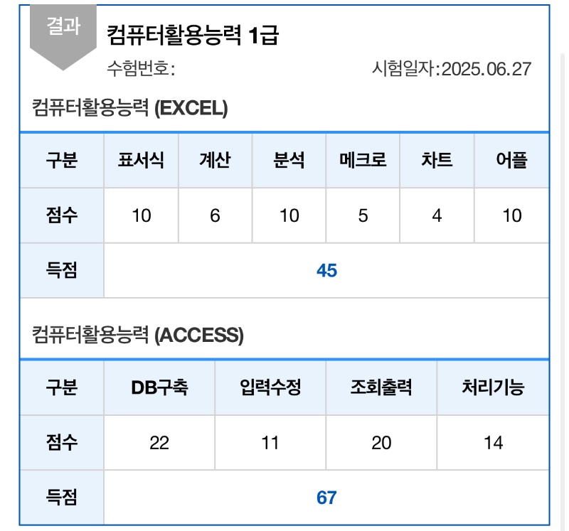 1급... 액세스 미췬 92점 무슨 일이야...