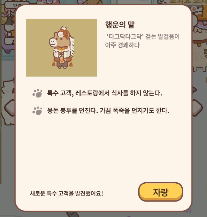 올해의 특수손님 행운의 말