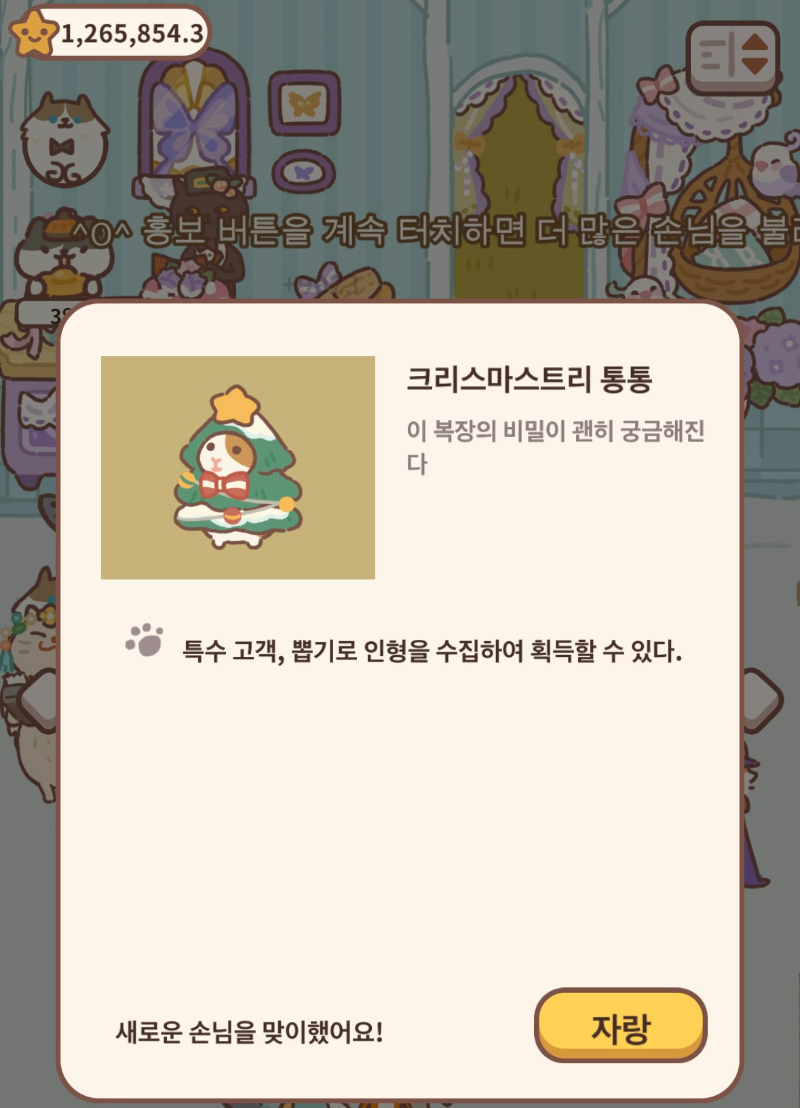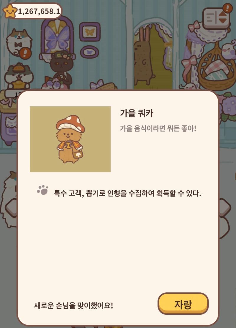고양이식탁 게임 기록54 - 여성의 날 이벤트, 봄 계절한정 손님 오리너구리 등장, 신상 노점 주인