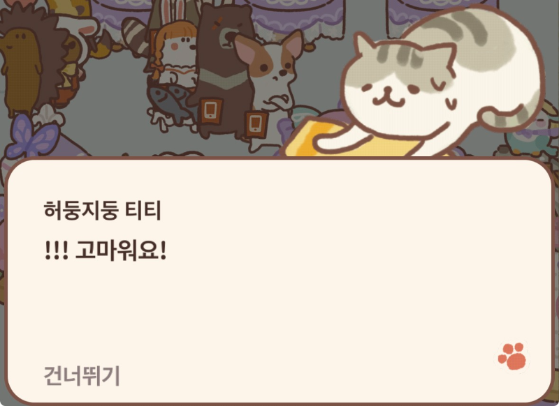 고양이식탁 게임 기록32 - 소중한 친구1, 문문의 편지, 티티의 일기15 편지 획득, 특수손님 수이 등