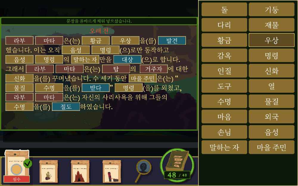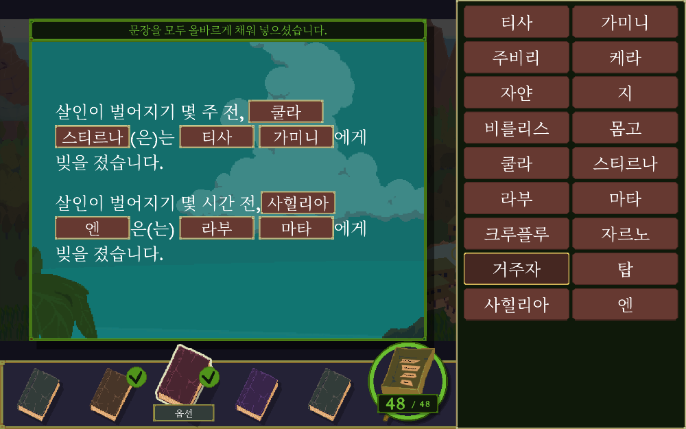 이번엔 첫번째 챕터에서 맞췄던 등장인물 이름을 먼저 주고 시작한다